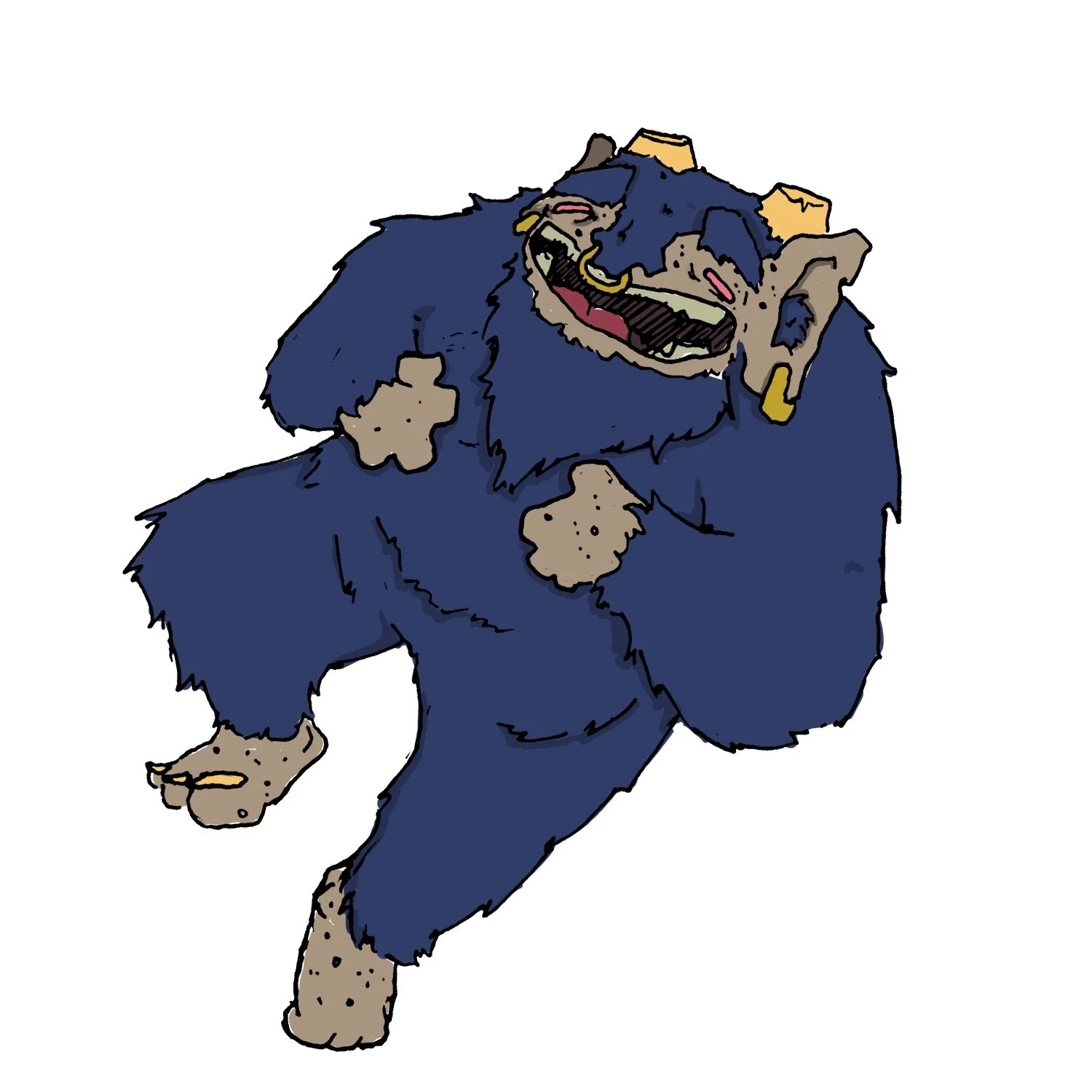 A shy and childlike creature that often forgets how large it actually is. Olagg waits for hikers to leave the park and rummages through any leftover gear, trash, and other objects to see if he can play or get any enjoyment out of it. It is fascinated with humans and finds any way to help hikers have a pleasant time. Olagg’s favorite leftover items are tents, as it finds a way to turn them into kites that it can fly above the cloud lines. All the recorded giants seem to get along with Olagg swimmingly.